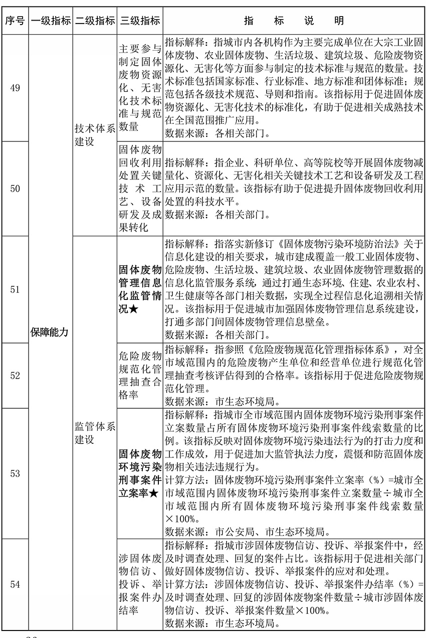 建立健全固体废物环境管理制度体系。建立部门责任清单,进一步明确各类固体废物产生、收集、贮存、运输、利用、处置等环节的部门职责边界。完善固体废物统计范围、口径、分类和方法。实行环境信息依法披露制度,增强固体废物管理信息透明度。深化固体废物分级分类管理、生产者责任延伸、跨区域处置生态补偿等制度创新,提升综合管理效能。